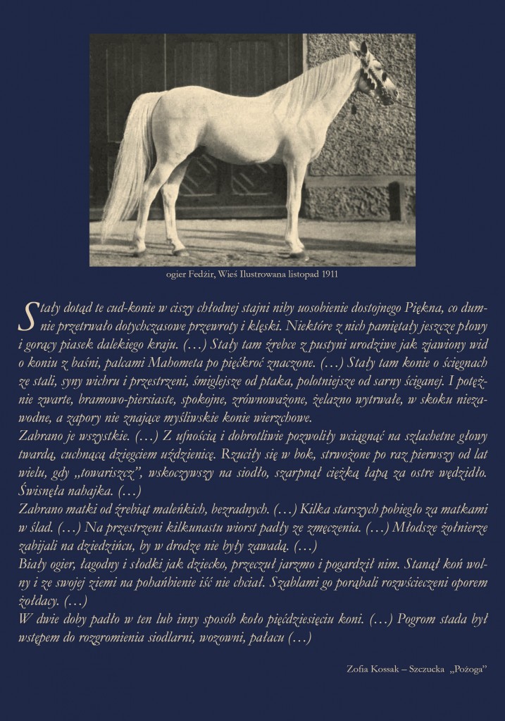 Tu spędzała Wielkanoc 1919 r., z rozdartym sercem obserwowała przez okna willi nad stawem i na bieżąco opisała pogrom wspaniałego antonińskiego stada rozpłodowego. A przecież miłość do koni przedstawicielka rodu Kossaków miała we krwi. Nie z własnych wprawdzie, ale z relacji naocznych świadków przekazała informacje o trwającym kilka dni pożarze pałacu antonińskiego w sierpniu 1919 r.