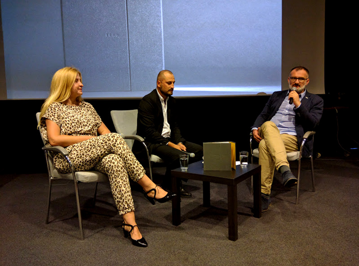 Spotkanie autorskie Magdalenyi i Maksymiliana Rigamonti (w środku) na temat książki „Echo” w Muzeum Emigracji w Gdyni, czerwiec 2018 r. Spotkanie prowadził Jarosław Włodarczyk z Press Club Polska (z prawej), fot. J. Sokołowska-Gwizdka.
