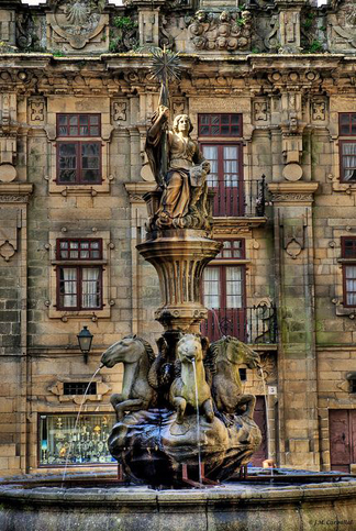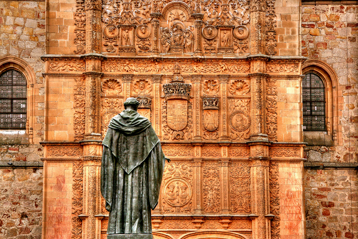 Po powrocie do Madrytu odczułem pewną ulgę: było już chłodniej. Chociaż zostało mi bardzo niewiele pieniędzy, pomyślałem sobie: „Jakoś to będzie!” i wybrałem się najpierw do Salamanki (na zachód od Madrytu, blisko granicy portugalskiej), a potem do Santiago de Compostela, które leży na północnym zachodzie, daleko w sercu deszczowej, wilgotnej Galicji. Oba miasta zachwyciły mnie ogromnie. Salamanka jest cała z kamienia w kolorze złocistej ochry, promienna, z najstarszym hiszpańskim uniwersytetem z 1253 roku, o przepięknej fasadzie w stylu plateresco, tym uporządkowanym, niezwykle symetrycznym stylu na pograniczu gotyku i renesansu. Ta fasada uniwersytetu to istny haft w ciemno złocistym kamieniu! Choni Barroso, umiarkowana antyfrankistka z kursu w Maladze (do niedawna pracowała w hiszpańskim Ministerstwie Edukacji) była mi wspaniałym cicerone po swym rodzinnym mieście. W Santiago de Compostela dominuje kolor szaro zielony. Wszystkie stare budowle,w tym niezwykle piękna, olbrzymia katedra z grobem św. Jakuba Apostoła, są z ciemnoszarego kamienia porośniętego często mchem. Drobny deszcz, lekki chłód, zielone wzgórza, to wszystko sprawia, że w Galicji człowiek czuje się jak w zupełnie innym świecie. Co za ogromny kontrast w zestawieniu z Andaluzją, czy nawet Kastylią z ich pustynnym pejzażem i ubóstwem wszelkiej roślinności! Ta soczysta zieleń, mchy, bluszcze oplatające pnie drzew, cieniste platany, rześkie powietrze, piękne romańskie kościółki, celtycka przeszłość, przynależność językowo – kulturowa do sąsiedniej Portugalii, to zadecydowało, że zakochałem się w Galicji od pierwszego wejrzenia. O ileż lepiej się tu czułem jako samotny pielgrzym, bez tłumów turystów, niż w spalonej słońcem, okrzyczanej arabskiej Andaluzji! Dopiero tu znalazłem właściwy nastrój do podziwiania piękna, do kontemplacji i rozmyślań.