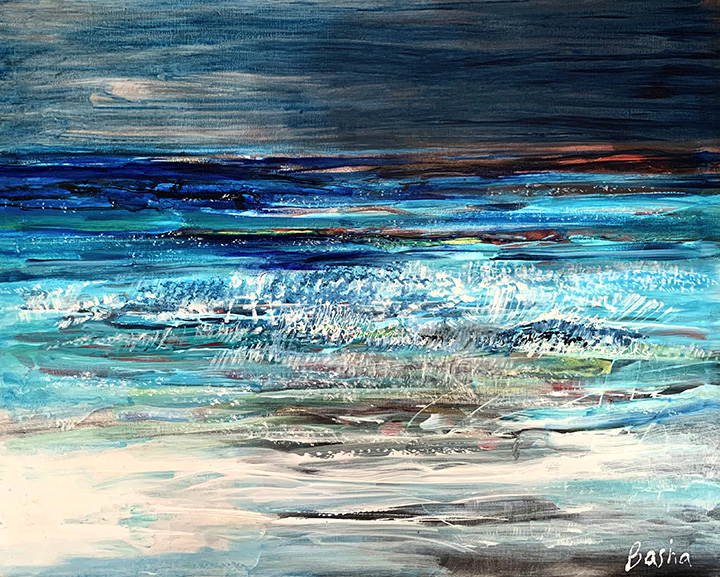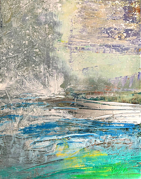 Singing Ocean, arcylic on canvas, 20×16 inThe Silver Wind, acrylic on canvas, 16×14 in