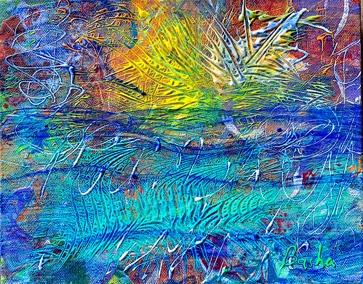 Life started in Water, acrylic on canvas, 36×30 inThe Entrance, acrylic, mixed media on canvas, 24×18 in