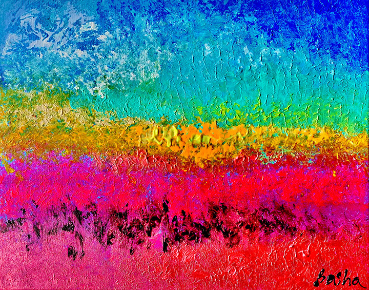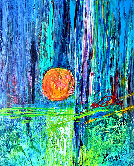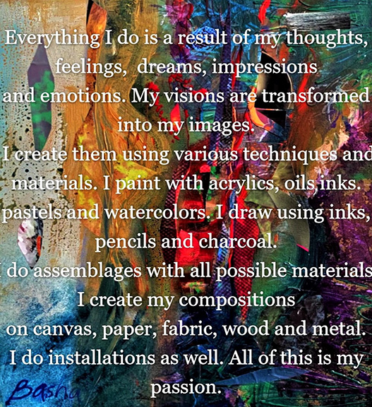 Od kiedy mieszkamy na Florydzie, przed zaśnięciem słyszymy Ocean i czujemy jego zapach. Odbicia Oceanu pojawiają się więc w moich snach i realizują w obrazach. Ogarnęła mnie nieokiełznana twórczość oceaniczna, której w żaden sposób nie da się powstrzymać. Powstają rozmalowane motywy morskie, pełne wiatru, słońca, koloru i ruchu. Na obrazach pojawiają się także motywy przyrody i przestrzeni, przez nią organizowanej. Odnalazłam tutaj nową osobistą własność w postaci mojego twórczego napędu. Takie są moje odczucia Oceanu i przyrody, których jestem częścią.(Basha Maryanska).