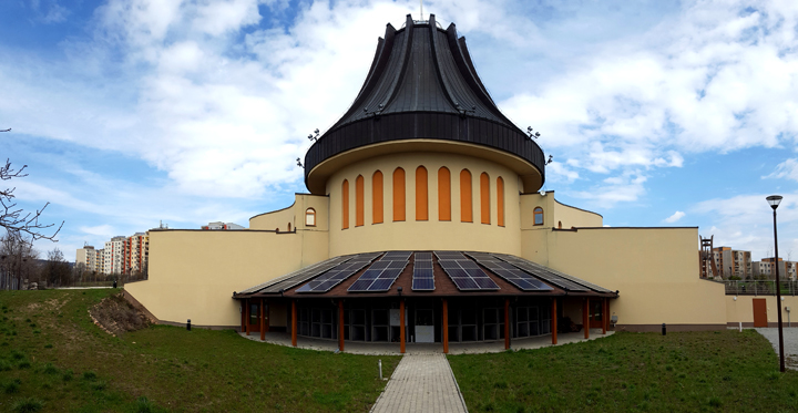 W środę, 2 maja, moje imieniny. Od rana telefony z życzeniami. Niektóre osoby nawet nie wiedzą, że jestem w Budapeszcie. Po południu jedziemy na wzgórza nad Budą. Z punktu widokowego na ich szczycie wspaniały, obszerny widok na Budę i tę jej leżącą na stoku dzielnicę, w której mieszkali rodzice Kálmána. Widać linię Dunaju i kawałek Pesztu. Anni chciała jeszcze pokazać mi mozaiki w kościele Świętych Aniołów (Templom Szent Angyalok) nisko, na obrzeżach Újbudy, czyli Nowej Budy. Niestety, kościół był zamknięty. Teraz w internecie obejrzałem video na temat niedawnej instalacji tych mozaik i znalazłem także kilka niezłych ich reprodukcji. Przy okazji także zdjęcie słynnego architekta o swojsko brzmiącym nazwisku Imre Makovecz (1935-2011), którego dzieła architektoniczne uwielbia Attila. Makovecz reprezentował tak zwaną architekturę organiczną. Domyślam się, że współpracował przy projekcie świątyni, którą wzniesiono chyba w roku 2010 (wszystkie dane na jej temat są TYLKO w języku węgierskim).