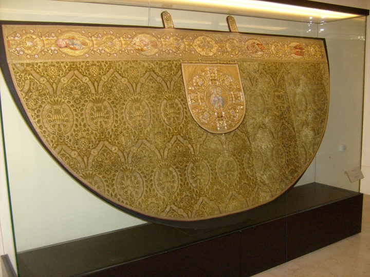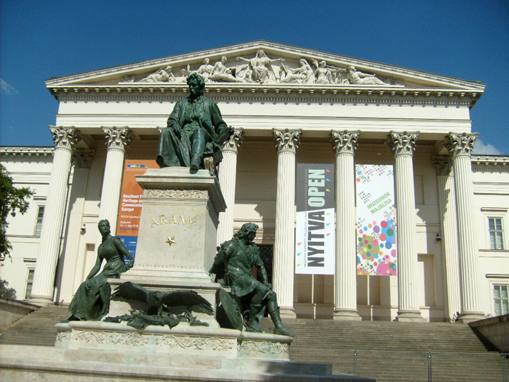 W czwartek, 3 maja, po obiedzie jedziemy do Węgierskiego Muzeum Narodowego. Wybrałem pierwszy okres historii Węgier: od jej początku aż po wiek XVIII. Sprzączki, wszelkiego rodzaju złote i srebrne ozdoby, których zdjęcia oglądałem w cytowanym wyżej katalońsko-węgierskim albumie, wspaniałe kolorowe ilustracje walk z poganami (precyzuję: chodzi o wiek XIV i walki, jakie prowadził z Kumanami Władysław Andegaweńczyk), rzeźba przedstawiająca głowę króla Kalocsy, złote monety z XIV wieku, niezwykle ozdobny wieszak na płaszcze z herbem węgierskich Andegawenów, portret Zygmunta Luksemburczyka, arras tronowy króla Macieja, miniatura turecka przedstawiająca bitwę pod Mohaczem, „Odebranie Budy Turkom w roku 1686” – obraz flamandzkiego artysty Fransa Geffelsa, portrety węgierskich królów i książąt, obraz zatytułowany „Nasze życie i nasza krew, czyli przysięga na wierność Marii Teresie (1740-1780) podczas obrad Sejmu w Bratysławie w roku 1741”, drzeworyt przedstawiający egzekucję przywódców węgierskich „jakobinów” w roku 1795, tak, ale najbardziej zwróciły moją uwagę wielkie gotyckie i renesansowe stalle udekorowane herbami, wspaniały piec o niebieskich kaflach zdobionych ornamentyką roślinną, renesansowa skrzynia z kolorowymi płaskorzeźbami pary w węgierskich strojach i puttem pośrodku oraz bogato zdobiony renesansowy sarkofag prefekta Komitatu Küküllö (okolice dzisiejszej Sighișoary), który zwał się György Apaffi (1588 – 1635).