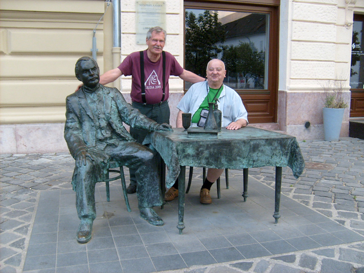 Po południu, nieznany mi zupełnie Rynek Główny w Starej Budzie (Fö ter, Óbuda): kilka dużych parterowych kamienic mieszczących restauracje, jeden stary piętrowy budynek, gdzie do niedawna było muzeum, a dalej pomnik siedzącego na krześle przy stole pisarza węgierskiego o nazwisku Gyula Krúdy (1878-1933). Obok, puste krzesło dla turystów. Najbardziej znane jego dzieło to Młodość Sindbada.