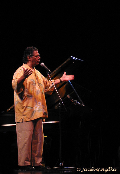 Podczas koncertu w Montrealu w pierwszej części grał standardy jazzowe – piszę dalej w artykule „Jazz w kolorach lata”. – Wykonał je bardzo dobrze i błyskotliwie, ale zabrakło w nich głębi i oryginalności improwizacji, jakiej oczekiwalibyśmy od tak wielkiego artysty. W drugiej części, obok dwóch preludiów Scriabina, zagrał własne kompozycje. Pod koniec występu Chic Corea podzielil widownię na 5 części i wykonał improwizowany utwór wraz z publicznością, która okazała się muzykalna. Z podobnym koncertem artysta wystąpił w Sali Kongresowej w Polsce na Walentynki w 2001 roku.
