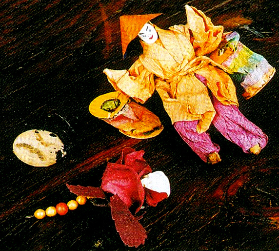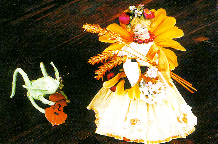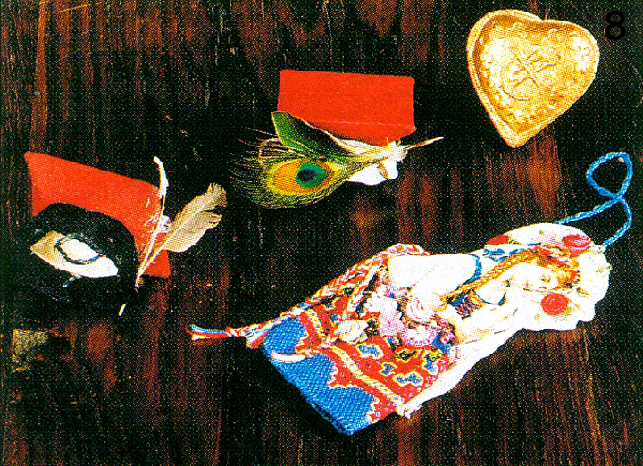 Niezwykle cenny jest komplet czterech ptaszków z ligniny, pomalowanych farbami i ozdobionych prawdziwymi piórkami. Dostała go moja siostra w 1942 r. na swoje pierwsze święta Bożego Narodzenia; zabawki te wykonała stryjenka zgodnie z tradycją jej rodziny. Ukryte są w nich życzenia, aby dziewczynka wyrosła na osobę fizycznie i duchowo piękną, co symbolizuje figurka pawia, czujną i inteligentną, co uosabia kogut, opiekuńczą, miłosierną i wytrwałą, o czym świadczy figurka kury, a bocian symbolizuje dobre macierzyństwo. Chłopcy zgodnie ze zwyczajem otrzymywali choinkowe zabawki symbolizujące następujące cnoty: anioła – sprawiedliwość, lwa – męstwo, wołu – umiarkowanie, orła – roztropność.