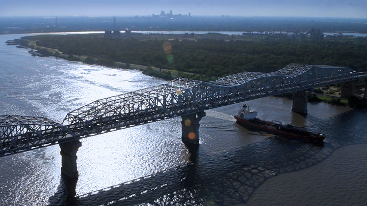 BM: Aby pokazać w filmie projekt, inżynierię i architekturę tych super konstrukcji w całej ich okazałości, należało je sfilmować z każdej perspektywy. Jednym z trudniejszych wyzwań pod względem logistycznym, finansowym i operatorskim były zdjęcia z helikoptera, pokazujące struktury mostów w pełnym słońcu, pomiędzy wodą, lądem i powietrzem. Tym zajął się Leonard, ze względu na swoje umiejętności i doświadczenie. Aby jednak móc nakręcić film z powietrznej perspektywy, trzeba było uzyskać licencje na fotografowanie, w niektórych przypadkach od Departamentu Obrony Stanów Zjednoczonych, ze względu na militarne znaczenie obiektów. Również władze miasta musiały wydać osobne pozwolenie na filmowanie i osobne na chodzenie po moście. Należało też mieć zwiększoną polisę ubezpieczeniową do filmowania niektórych mostów. Trzeba było wybrać idealną porę roku i dnia, ze względu na światło, które pasowałoby do opowiadanej przez nas historii i koordynować prace zdjęciowe z planem miast i codziennym życiem mostów, perfekcyjnie zsynchronizować z nadjeżdżającymi samochodami i pociągami, czy nadpływającymi statkami. Zdarzało się, że trzech różnych operatorów filmowało w tym samym czasie dany most pod różnymi kątami. I tak Leonard kręcił film z helikoptera, mając na to tylko 25 minut, podczas gdy inny operator skupiał się na szerokim ujęciu brzegu rzeki, a trzeci filmował wielką barkę, która przepływała pod mostem. Filmowaliśmy też używając drona (tak było np. przy Broadway Bridge), jak również kamer go-pros. Podczas filmowania Huey P. Long Bridge, Leonard był przypięty do jednej ze stron mostu, aby sfilmować z bliska nadjeżdżające pociągi i wejść z kamerą w stalową strukturę. To było dość niebezpieczne. Robienie zdjęć z łódki od strony wody ograniczały silne prądy rzek.