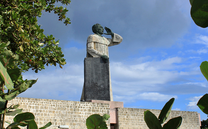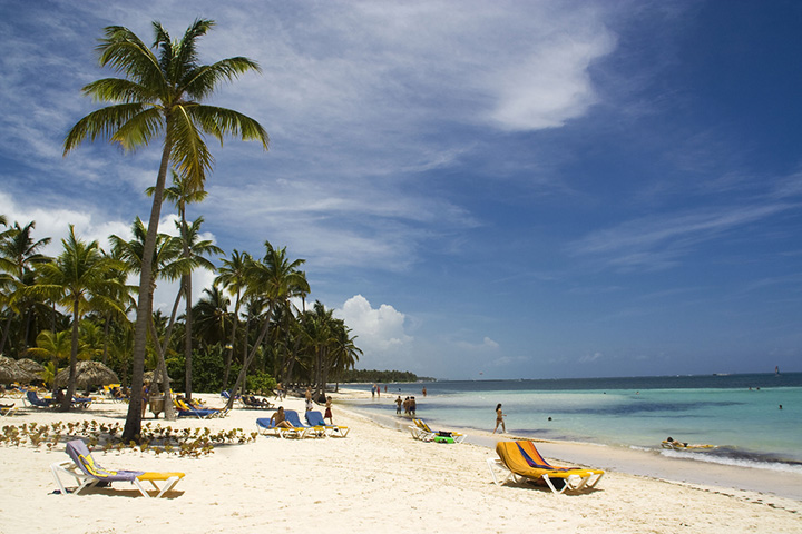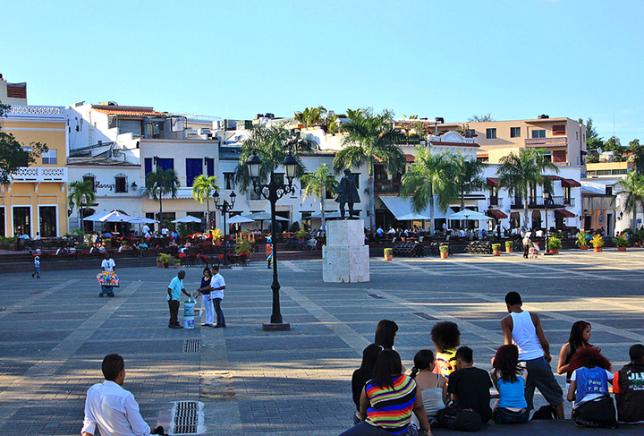 Ląduję w Punta Cana na południowym wschodzie wyspy, w centrum turystyki, gdzie piękne karaibskie plaże o śnieżnobiałym piasku i turkusowym odcieniu morza. Pasażerów samolotu, który przyleciał z Amsterdamu, witają kolorowo ubrane tancerki i pozują do zdjęcia z każdym pasażerem. Taksówkarze informują mnie, że nie ma autobusów do pobliskiego miasta Higüey i że jedynym środkiem transportu są taksówki. Umawiam się z kierowcą dużej kamionetki, że zapłacę mu 30 dolarów USA za odcinek około 60 km do Higüey. Góry, piękna tropikalna przyroda, jest miło. Gdy dojeżdżamy do miasta autobus do stolicy właśnie rusza. Zatrzymał się jednak, ale okazuje się, że nie ma ani jednego wolnego miejsca. Kierowca wskazuje mi schodki koło siebie jako miejsce do siedzenia i wyściela je poduszkami. Cudowne miejsce. Jestem w siódmym niebie. Rozdaję współpasażerom jabłka. Nastrój się poprawia. Jest sympatycznie, a widoki nadzwyczajne: kwitnące drzewa, sielskość absolutna. Odległość do stolicy 155 km.