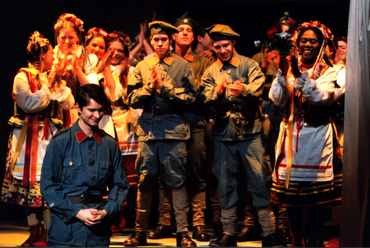 Obsada spektaklu liczyła 34 osoby. Wystąpili w nim głównie studenci Wydziału Teatralnego, w tym troje ze studiów podyplomowych. Dwie główne role obsadzone były zaproszonymi z Polski młodymi artystami. Pułkownika Chwalskiego grał Paweł Chomczyk, student IV roku Akademii Teatralnej w Warszawie (Wydział Lalkowy w Białymstoku). W roli tej wypadł znakomicie. Ma on talent aktorski z widoczną wiarą w to, co mówi ze sceny, dzięki czemu stworzył barwną i żywą kreację postaci. Wykazał się też umiejętnościami w operowaniu, wykonaną w Polsce „marionetą strunową” wysokości ok. 80 cm, symbolizująca Paderewskiego, która w spektaklu pełniła ważną „aktorską rolę”. Paweł Chomczyk stworzył wspaniałą iluzję postaci i gry fortepianowej mistrza. Ogromnym walorem młodego aktora była też dobra znajomość języka angielskiego. W postać Zygmunta Dygata, wcielił się młodziutki pianista-wirtuoz, uczeń klasy maturalnej Liceum Muzycznego im. I. Paderewskiego w Tarnowie, Igor Lipiński, dwukrotny laureat Festiwalu im. Paderewskiego w Kąśnej Dolnej. Jego rola polegała głównie na grze fortepianowej i wywiązał się z niej wspaniale, wywołując burze oklasków na widowni. Występujący w spektaklu młodzi aktorzy zdawali się być „dziećmi Paderewskiego”, przygotowani odpowiednio przez swojego profesora, Kazimierza Brauna, którego wpływ na studentów nie ograniczał się jedynie do spraw czysto warsztatowych i technicznych, ale też duchowych, poprzez długie rozmowy z młodzieżą na temat podłoża ich ról, patriotyzmu, historii Polski i wszelkich wartości. Wyraźnie się czuło w spektaklu kontakt młodzieży ze słowem i rolą, która nie była im obca, mimo, że większość studentów nie miała polskich korzeni i nic o Polsce nie wiedziała (dwoje aktorów było czarnoskórych). Dramatyczną rolę stworzyła studentka, odgrywająca Halinę z drugiej części spektaklu, dziewczynę w ciąży, która opowiada o swoim mężu, Olku, jego marzeniach o wolnej Polsce i tragicznej śmierci w ulicznej strzelaninie. Z przejęciem mówiła o swoim strachu, gdy widząc strugę krwi męża, nie drgnęła, nie dotknęła go, aby zachować życie swojego dziecka.