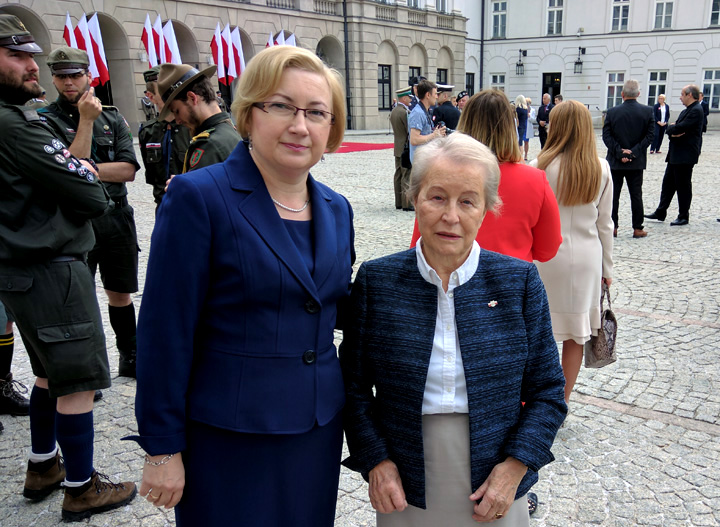 Na dziedziniec wchodzą zaproszeni przez Kancelarię Prezydenta goście. Ekipa telewizyjna i fotoreporterzy zajmują wyznaczony sektor. Zauważam dr Iwonę Korgę – prezes Instytutu Piłsudskiego w Nowym Jorku. Za chwilę pojawia się pani Magda Kapuścińska – była prezes Instytutu Piłsudskiego, która po wielu latach pobytu za granicą, zdecydowała się wrócić na stałe do Polski. Gdy mieszkałam w New Jersey przez jakiś czas pracowałam w Instytucie Piłsudskiego przy digitalizacji zbiorów. Widziałam wtedy poświęcenie obydwu Pań i oddanie pracy na rzecz pielęgnowania polskiej historii i zabezpieczenia jakże cennych zbiorów.