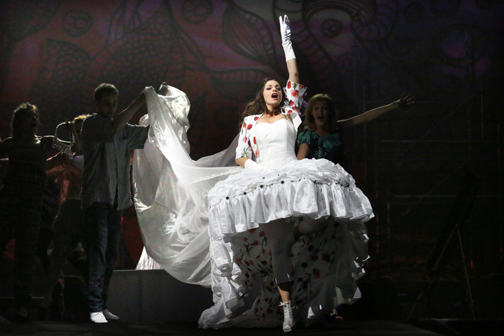 Tym razem dyrektor zaprosił do współpracy Beatę Redo-Dobber – artystkę wszechstronną, która przygotowała znakomity spektakl operowy, będąc jego reżyserką, jak też scenografem, autorką projekcji multimedialnych, kostiumów i choreografii… A jakby tego było mało – również osobą prowadzącą chóry. Jest to zatem spektakl w pełnym tego słowa znaczeniu autorski, spójny, o wyrazistym przesłaniu.