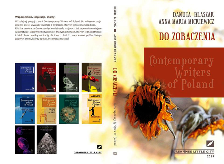 Mnóstwo ciepłych słów pod adresem Danuty Błaszak przeczytamy w refleksjach emigracyjnego naukowca i znawcy poezji, Włodzimierza Holsztyńskiego, a także – Anny Marii Mickiewicz, która m.in. wspominając o tradycyjnych publikacjach portalu „Miasto literatów”, przywołuje serię wydawniczą związaną z polską twórczością, ale dla czytelnika anglojęzycznego – wychodzącą od 2005 r. ”Contemporary Writers of Poland”. To interesująca seria, w pięknym opracowaniu graficznym Agnieszki Herman (także poetki), wydana – jak wszystko co robi Danuta Błaszak i partnerujące jej osoby – za własne środki, bez oglądania się na nieosiągalny sponsoring. Oto tom szósty, który mam na półce – „The Other Side of the Screen”, przygotowany wespół z poetką i edytorką z Polski, Alicją Kuberską – z unikatową twórczością wielonarodową. Oto tom siódmy, pt. „Legendary”, dwudzielny, bo część pierwsza zawiera propozycje współcześnie piszących z różnych krajów, część druga stanowi prezentację dorobku tych, którzy tworzyli po II wojnie światowej, m.in. Leszka Szymańskiego, legendarnego założyciela „Współczesności”, któremu dedykowana jest książka. Tom ósmy, tymczasem – ostatni, pt. „On Life’s Path” Danuta Błaszak przygotowała wspólnie z Anną Marią Mickiewicz, poetką, animatorką życia literackiego w Londynie, twórczynią łączącego wirtualnie literatów dwujęzycznego portalu Fale Literackie / Literary Waves. To, że jest wieloletnią członkinią Związku Pisarzy Polskich na Obczyźnie, uhonorowaną Medalem Zasłużony Kulturze „Gloria Artis” niech będzie zachętą do poznawania twórczości i działań Anny Marii Mickiewicz oraz gwarancją, że druga z autorek „Kosmosu literatów” patronuje książce profesjonalizmem, podobnie jak Danuta Błaszak.