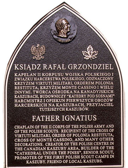 Z osiadłymi w Ontario Kaszubami związał się śląski franciszkanin ojciec Ignacy, inaczej ks. Rafał Grzondziel. Odwiedzałem go na Kaszubach, a także w sąsiadującym z London, Ontario, miasteczkiem Woodstock, gdzie przez kilka lat był proboszczem polskiego kościółka. Ten zasłużony kapłan spod Katowic spoczął na cmentarzu w ontaryjskim Wilnie. Tablica na obelisku odsłoniętym opodal przez niego zbudowanej kaplicy głosi w dwu językach, po angielsku i po polsku: