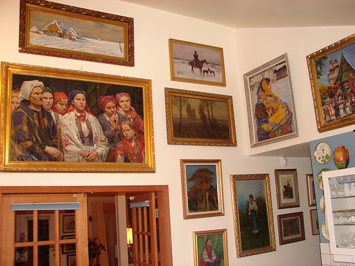 Kolekcja malarstwa Heleny i Tadeusza Kwiatkowskich. Nad drzwiami obraz Wincentego Wodzinowskiego „Suma”. Druga część obrazu, jak się w tym roku okazało, znajduje się w kolekcji niedawno zmarłego Zbigniewa Mikulskiego ze Szwajcarii, fot. Józef Kołodziej