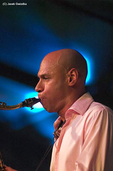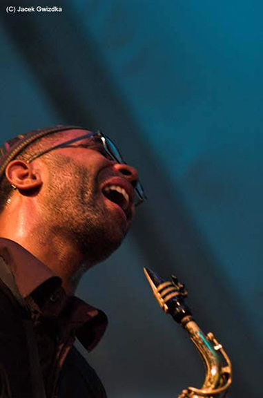 Well, it is not easy. Very often photographers have limited conditions and time, always without a flash, with only limited time allowed, typically 5-10 minutes, or only during the first song. At the beginning of their performance musicians are not „warmed up” yet. The most restrictive taking photos rules I received were during Prince’s performance at the Montreal Jazz Festival in 2002. We were allowed to take pictures for a few minutes, from the very back of the concert hall, and only after the first few minutes of the concert. Then, the concert hall was completely dark, none of my photos came out… Apart dealing with such trifles, I try to capture the fleeting expression on the musician’s face or of his body. Kenny Garrett is probably the most dynamic and photogenic jazz musician I’ve photographed.