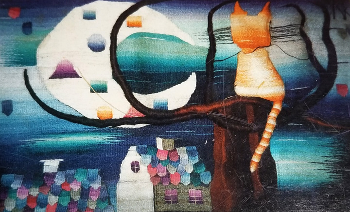 W 2002 roku dostałam do dyspozycji dwie duże sale w polskim Konsulacie, podczas Festiwalu Chopinowskiego. To było olbrzymie wyzwanie i nigdy bym tego nie dokonała, gdyby nie moja przyjaciółka z Polski, Krysia Stawecka, która przysłała mi do pomocy swego kuzyna Roberta Litwina, wspaniałego fachowca, który przez kilka wieczorów budował przemyślne konstrukcje dla moich olbrzymich gobelinów.