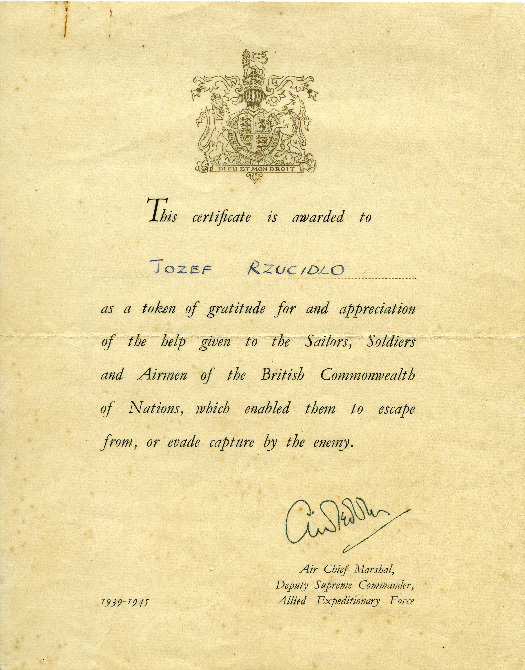 Po wojnie Józef Rzucidło za swoje zasługi został uhonorowany przez brytyjskie władze wojskowe dyplomem wdzięczności.