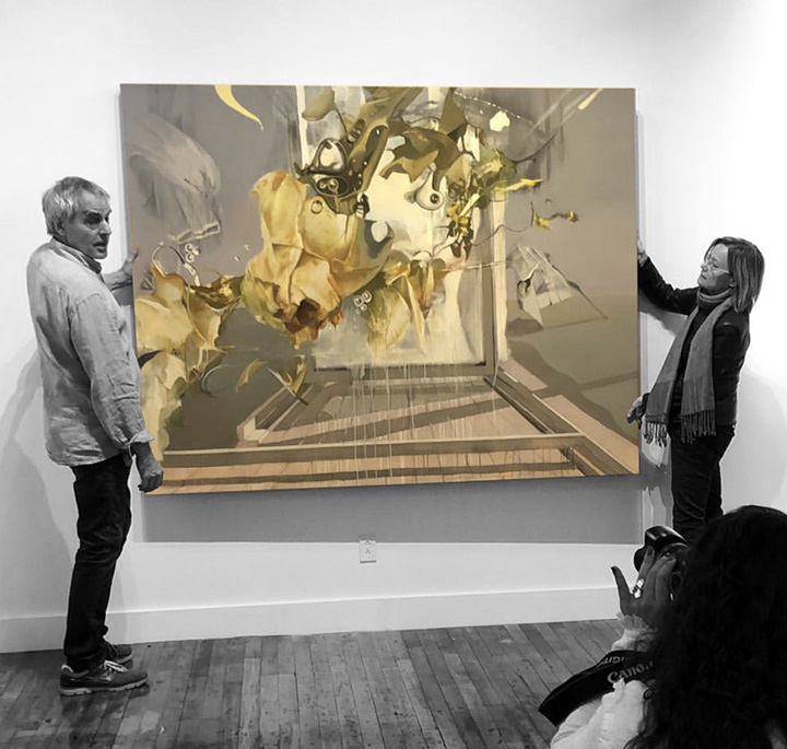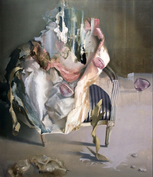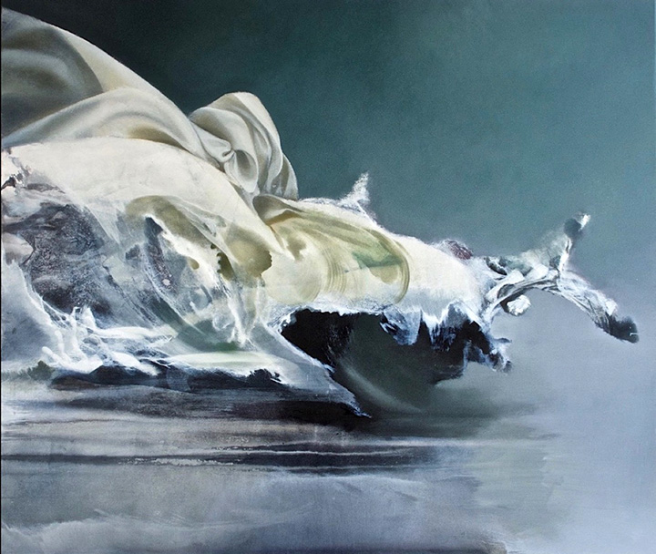 Zachwyciło mnie jej malarstwo. Poetyckie, teatralne, narracyjne, operujące symbolami, konstruujące i dekonstruujące wyimaginowane światy wyczarowane z dziejów kultury europejskiej. Coś powstaje w chaosie spienionych tkanin – to stopa, ręka, Wenus rodzącej się z piany morskiej, na obrazie „Venus”. Greckie posągi żyją na nowo. Są piękne, pięknem walczącym ze zniszczeniem. Przezroczyste chusty, rozwiane welony, rozwijające się bandaże, spiętrzone tkaniny, nadają ruch obrazom i budują dramatyzm przedstawianych przez malarkę historii.