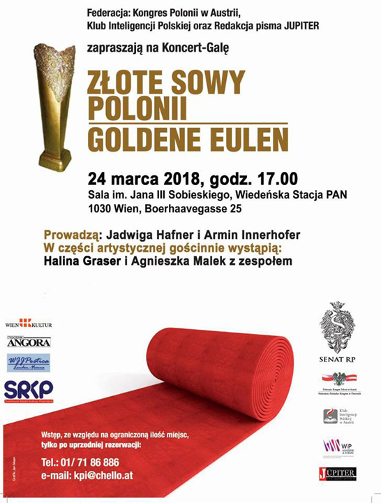 – Tak, spotkał mnie wielki zaszczyt. Nagroda jest przyznawana przez Klub Inteligencji Polskiej w Austrii oraz redakcję pisma „Jupiter” za propagowanie polskiej kultury poza krajem w różnych dziedzinach. Ja ją otrzymałam w kategorii Literatura. Statuetka będzie wręczana na gali w Sali Sobieskiego Polskiej Akademii Nauk w Wiedniu 24 marca br.