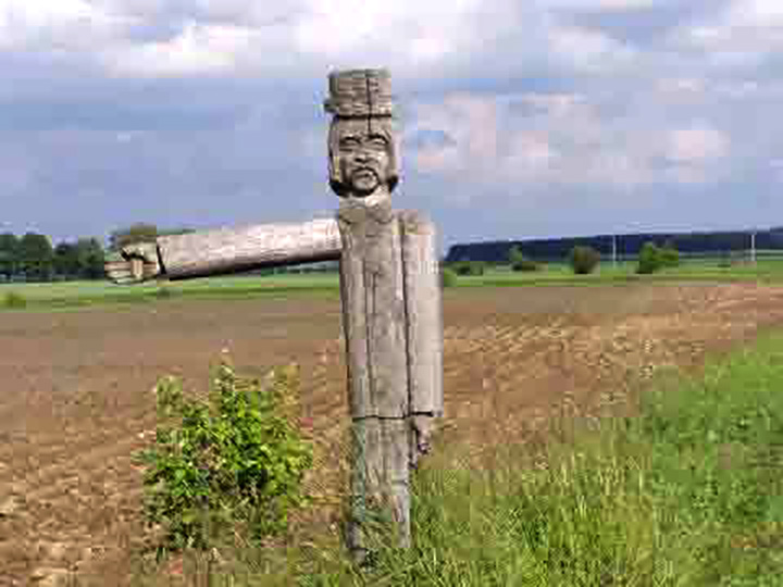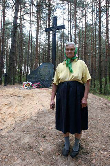 Nie zauważamy stojących przy drodze drewnianych świątków wskazujących drogę. Brak napisów. Żeby zapytać podjeżdżamy pod otwarte drzwi obory. Okazuje się, że należy do kołchozu. Kilkanaście byków hodowanych na mięso stoi po kolana w gnoju. Przez szum much robotnik tłumaczy, że Mogiła w lesie obok, w Milewiczach. – Tu Bohatyrowicze – katolickie, Milewicze – prawosławne – mówi. Z pierwszej chaty Milewicz wyskakuje chętna do oprowadzenia Sudakija Kemko. Zmienia fartuch na wyjściowy, poprawia chustkę. – Mama Wiktoria Żukiewicz też była Polką – opowiada po rosyjsku. Sudakija została tu z mężem, dzieci poszły do miasta. W wiosce mieszka 16 osób. Idziemy na skróty przez las sosnowy. Pachnie żywicą. Tu wybrali się na patriotyczną ”randkę” bohaterowie „Nad Niemnem” Justyna Orzelska i Jan Bohatyrowicz. Do Mogiły z 1863 r. Pisanej z dużej litery. Błyska metalowy krzyż na kopczyku. Miejsce pochówku czterdziestu powstańców. Świeży wieniec od młodzieży z Lublina. – Tu będzie Msza latem, dużo ludzi przyjedzie – cieszy się przewodniczka. Potem zaczepiając spódnicą trawy podprowadza nas na bagnisty brzeg Niemna.