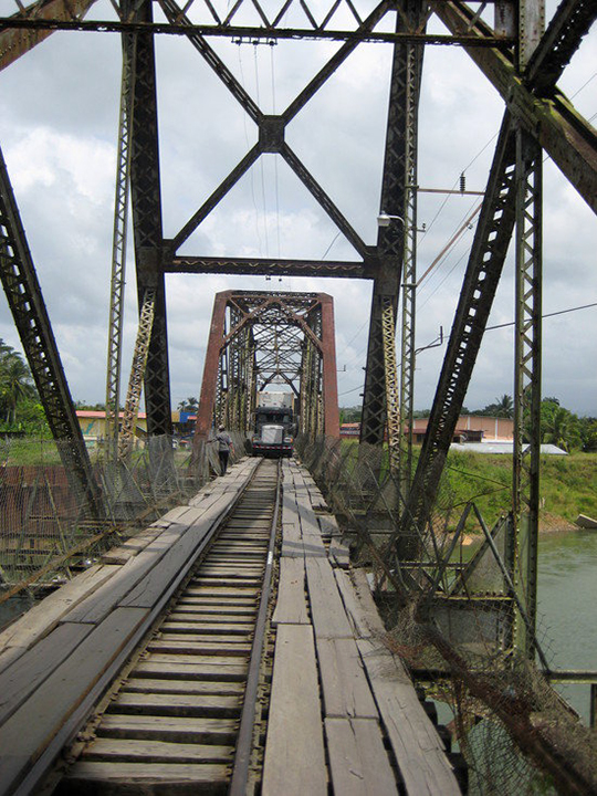 Przejazd do Sixaoli (to podobno tylko 40 km!) trwa całą wieczność!!! Droga straszna, szutrowa, kamienista, pełna głębokich dziur i wybojów. Kurz wdziera się całymi tonami przez okna autobusu. Po drodze wielkie plantacje bananów. Nie wiem, ale myślę, że to trwało ze trzy godziny. Makabra!!! Wreszcie Sixaola, absolutna dziura zabita deskami, bałagan niesamowity, rozgrzebane koczowisko. Podbiega mały chłopiec i wydziera mi walizkę z ręki, mimo moich wyjaśnień, że nie mam pieniędzy, by mu zapłacić. Uparł się i już jesteśmy na wysokim, rozpadającym się moście nad rzeką Sixaola. Po jego przejściu budka z grubą Murzynką wewnątrz: to panamski punkt kontroli granicznej i jestem jedynym turystą! Bez czekania, kulturalnie i błyskawicznie zostałem obsłużony i już jestem w Panamie, cały szczęśliwy, że mam za sobą tę koszmarną pod każdym względem Kostarykę! Kawa i zaraz potem taksówką po wspaniałej asfaltowej drodze z Guabito do Changuinola.