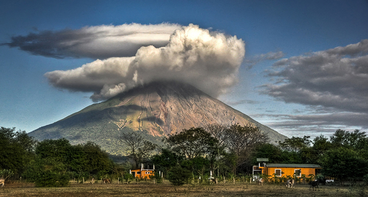 Tymczasem moje Niemki wróciły straszliwie zmordowane z wyprawy na szczyt wulkanu Concepción (1610 m), dokąd wybrały się o świcie w towarzystwie miejscowego indiańskiego przewodnika. Oświadczyły mi, że nigdy jeszcze nie brały udziału w tak męczącej wycieczce. Ten wulkan ma bardzo strome zbocza, żadnych ścieżek dla turystów, pełno głębokich żlebów. Łatwo sobie  wyobrazić, że wejście nań musi być wyjątkowo trudne. Na drugim końcu wyspy jest wulkan Maderas (1394 m), na który podobno łatwiej się wspiąć. Oba te wulkany połączone są wąskim przesmykiem i tworzą tę  wyspę otoczoną niewielkimi płaskimi terenami. Wyspa przypomina swoim kształtem takiego dziwnego motyla z bardzo wypukłymi skrzydłami, a jej nazwa w języku náhuatl oznacza „dwie góry”.