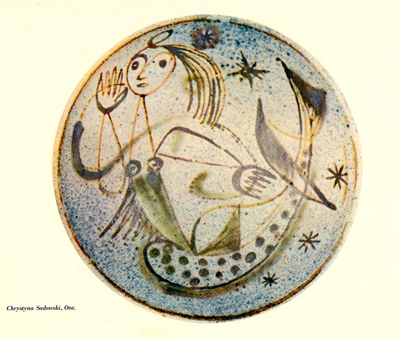 Krystyna Sadowska wypowiada się przede wszystkim w malarstwie. Jest malarką o wrodzonym, niezwykłym zmyśle dekoracyjności. Malarstwem są nie tylko jej obrazy, ale także całe jej wspaniałe tkactwo, batiki i ceramika. Operuje ekspresją linii i koloru, sprowadzając nieraz „naturę” do parabolicznych, umownych znaków. Wystawa wielkich tkanin dekoracyjnych i batików, jaką urządziła w styczniu 196o roku w Toronto miała świetną prasę. W jednym z artykułów czytamy o „porywającej nowoczesności pomysłów” – i o tym, że „każdy prawdziwy artysta ma pewien szczególny moment, który decyduje o zdobyciu e]sławy i wydaje się, że dla pani Sadowskiej on właśnie nadszedł”. I ja w to nie wątpię.