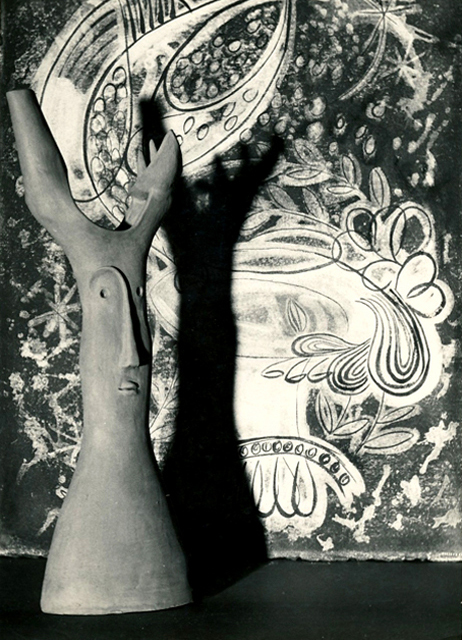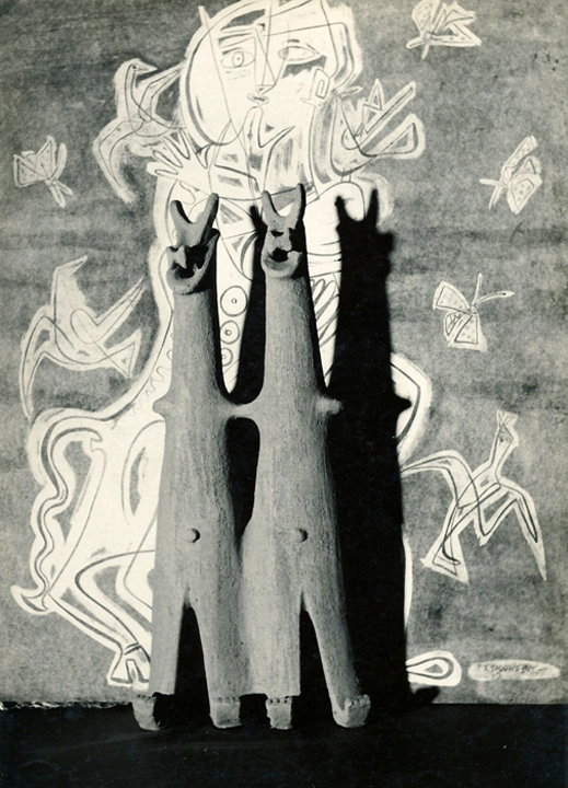 Tyle na razie o pięknej, wzruszającej, a nie znanej nam tutaj tych polskich plastyków na obczyźnie. Więcej od słów powiedzieć mogą o nich załączone ilustracje, gdzie męska, surowa forma harmonijnie współżyje z pełną uczucia i siły dekoracyjnością, gdzie dramatyczność wyrazu łączy się nieraz z żartobliwym uśmiechem. Więcej zapewne powiedzą niż owe dziesiątki nagród i odznaczeń oraz setki pochlebnych artykułów i wzmianek, jakie ta dwójka plastyków zdobyła sobie za oceanem.
