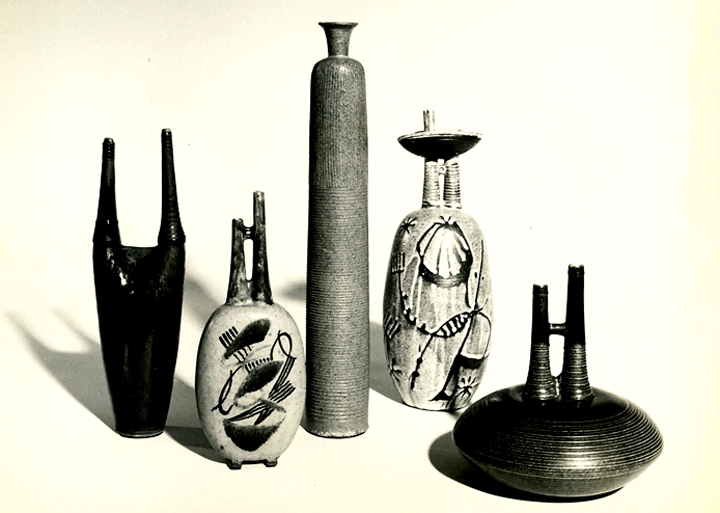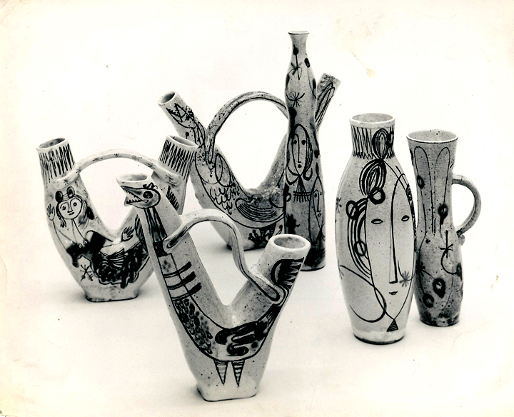 Koniec wojny – nie święci garnki lepią – Konrad Sadowski rzuca lotnictwo i za namową Krystyny rozpoczyna studia nad ceramiką w Central School of Arts and Crafts. Dalszy ciąg – już teraz wyłącznie artystycznej wędrówki – to tropikalna Brazylia – Parana, gdzie obydwoje pracowali jakiś czas przed wojną wśród polskiego wychodźstwa. W Paranie montują dwie równoległe pracownie – garncarską i tkacką. Sukcesy na wystawie w Rio zwracają uwagę na ich prace. W 1949 r. zostają zaproszeni do Kanady. Po paru latach upartej pracy, prób, eksperymentów, po licznych wystawach i kilkakrotnych zmianach miejsca zamieszkania, osiadają na stałe w Toronto, gdzie Krystyna Sadowska wykłada w College of Art, a jej mąż zostaje kierownikiem garncarstwa.