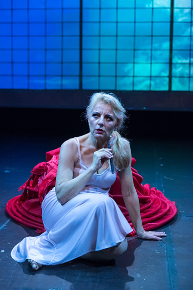 Na fotografiach Hanna Bondarewska w spektaklu „Lady”, podczas prapremiery 4 października 2019 r. w Instytucie Teatralnym w Warszawie.