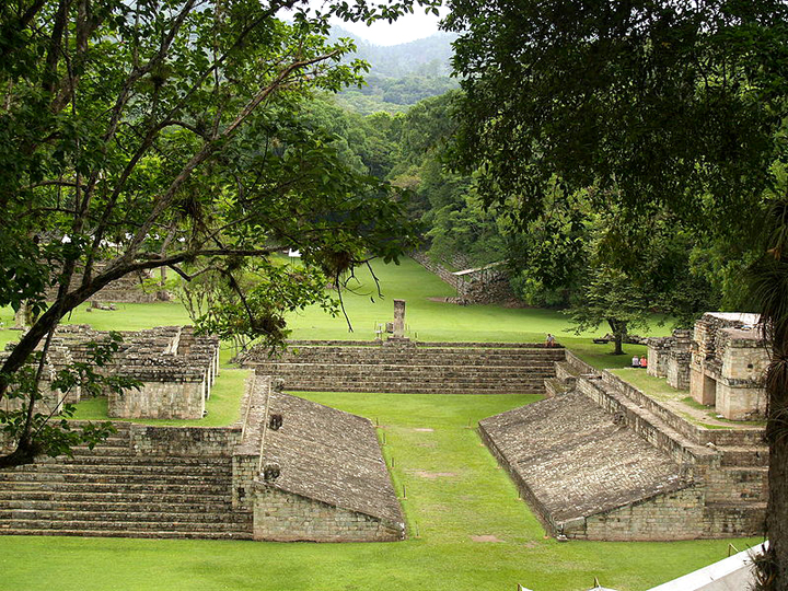Nazajutrz pokonałem jeden kilometr dzielący miasteczko od ruin i zostałem tam prawie cały dzień. Copán jest drugim po Tikalu największym miastem Majów okresu klasycznego (V – IX wiek). Opuszczono je definitywnie po roku 900. Ze względu na obserwatorium astronomiczne i dokonania matematyczne, a także walory estetyczne licznych steli zyskało sobie miano „Aten Ameryki”. To, co teraz wyraźnie tam widać, to w pierwszym rzędzie duży plac w północnej części, gdzie stoją niesłychanie barokowe stele (około 20), przedstawiające władców w strojach ceremonialnych. Są one pokryte z jednej strony hieroglifami. Tu i ówdzie widać między stelami poziome, niskie ołtarze z płaskorzeźbami dostojników. Na całym obszarze porośniętym suchym lasem tropikalnym jest pokaźna ilość pozbawionych świątyń stosunkowo niskich piramid, z których najważniejszą jest piramida ze Schodami Hieroglifów, osłoniętymi specjalną tkaniną. Schody te mają 63 stopnie pokryte gęsto hieroglifami. Przed schodami kamienna stela, pośrodku schodów stoi także kilka steli i nie wiadomo, czy zawsze tam stały, czy też ustawiono je później. Znakomicie zachowało się boisko do rytualnej gry w pelotę. Mnie najbardziej urzekły duże stele z wizerunkami władców. Każdy z nich ma bardzo dekoracyjne nakrycie głowy, rodzaj pióropusza, czy jakiejś wysokiej tiary. W miasteczku obejrzałem jeszcze interesujące muzeum ze zbiorami pochodzącymi z ruin i wróciłem do Chiquimula.