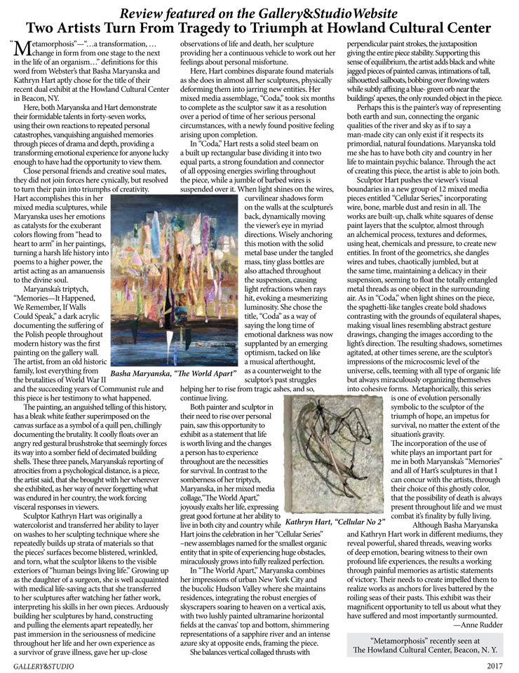 Współpraca z Kathryn Hart zaowocowała między innymi wystawą, która miała miejsce w czerwcu 2017 r. w Howland Cultural Center w Beacon w stanie Nowy Jork, w pięknym, historycznym obiekcie, w którym odbywają się koncerty, wystawy i przedstawienia teatralne. Basha Maryanska pokazała ponad trzydzieści swoich najnowszych dużych obrazów. Wystawa połączona była z koncertem jazzowym. Odwiedziło ją bardzo dużo ludzi. Wystawa była wielkim sukcesem.