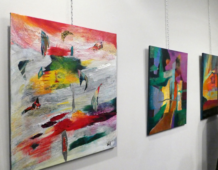 Prace artystek wzbudzały zainteresowanie. Na ścianie prace Kamili Wojciechowicz, fot. Sylwia Sokołowska.