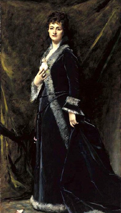Portret pochodzi z okresu, gdy Modrzejewska przyjechała, po raz pierwszy od wyjazdu z Ameryki, do Krakowa na gościnne występy z okazji jubileuszu Ignacego Kraszewskiego w 1880 roku. Jubileusz ten stał się wielkim zjazdem Polaków oraz manifestacją antycarską i antypruską. Po wspaniałym przedstawieniu sztuki „Miód kasztelański” Kraszewskiego, w której Helena zagrała główną rolę, aktorka była witana i żegnana owacyjnie, a na widowni siedziała jej matka, osłupiała i jedyna nie klaszcząca. Potem odbył się bal w Sukiennicach, z gigantycznym polonezem. Dochód z balu – 8000 guldenów przeznaczono na pomnik Mickiewicza w Krakowie. Pani Helena tańczyła całą noc, a jej wspaniała suknia przeszła do legendy. Modrzejewską obwołano drugą królową balu, bowiem pierwszą musiała być księżna Zuzanna Czartoryska.