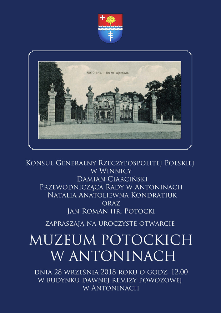 28 września 2015 roku zostanie otwarte Muzeum Potockich w Antoninach na Ukrainie, a wystawa fotografii stanie się częścią muzealnej ekspozycji. Konsul Generalny w Winnicy zgodził się przyjąć patronat honorowy nad tym muzeum. Sfinansował też druk książki “Antoniny” w języku ukraińskim.