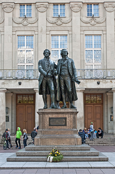 Podczas drugiej wizyty, w 1981 r., pojechałem z Forstu do Lipska. Tam wielki plac Augusta (Augustusplatz) z nowoczesnym budynkiem Gewandhausu, a naprzeciwko, opery, protestancki późnogotycki kościół Św. Tomasza XIII, w którym Jan Sebastian Bach był kantorem i gdzie został pochowany. Tuż obok, jego pomnik. Niedaleko stąd, piwnica Auerbacha, gdzie, między innymi, rozgrywa się akcja Fausta Goethego. W pobliżu, pomnik poety.