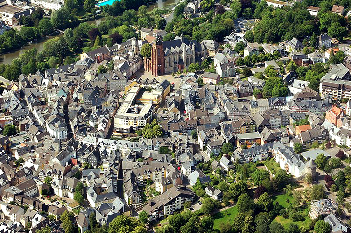 Następnego dnia Wetzlar, nad tą samą, ale szerszą tutaj rzeką Lahn. Domy kryte dachami z czarnych łupków bitumicznych. Potężna jednowieżowa gotycka katedra z XIII-XV w., ozdobiona portalami głównym i wieżowym, gotyckim tympanonem, a wewnątrz freskami i piękną czternastowieczną Pietą. Stare szachulcowe domy o szerokich fasadach, niektóre z XIV w., wspaniałe! Wśród nich skromny domek Goethego. To tu poeta pisał Cierpienia młodego Wertera (Die Leiden des junges Werthers), a natchnieniem do tej powieści był jego związek z mieszkającą w tym mieście Charlottą Buff. Ciekawostką jest fakt, że to ja byłem tam przewodnikiem turystów niemieckich, którym wskazałem drogę do domku Goethego. Sic!