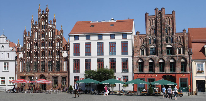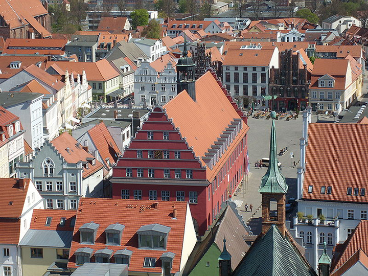 Podczas pobytu w sanatorium w Świnoujściu w marcu 2004 r. trzykrotnie jeździłem do Niemiec. 6 marca pojechałem najdalej, aż do Greifswaldu, znanego uniwersyteckiego miasta z gotycką katedrą Świętego Mikołaja z XIII w. i pięknym rynkiem z kamieniczkami o schodkowych szczytach. Nie mogłem się napatrzeć na dwie najstarsze z nich, z ciemnej cegły. Ratusz o ciekawym szczycie jest z XIII w., tak samo jak rynek, na którym stoi. Pozostałe kościoły gotyckie, a więc kościół Mariacki i Świętego Jakuba, wzniesiono także w XIII w. Uniwersytet powstał w XV w. i jest jednym z najstarszych na świecie.