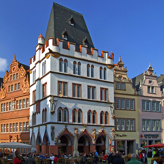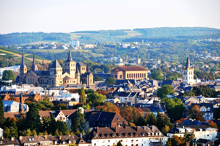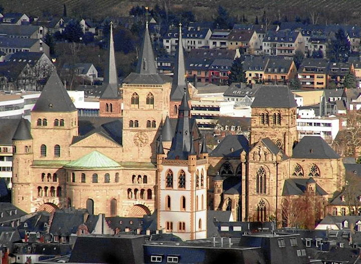 Zdecydowanie najpiękniejszym miastem niemieckim wydał mi się Trewir, po niemiecku Trier. Po prostu cudo! Leży nad Mozelą, osłonięte wzgórzami, gdzie winnice. Przepiękny Rynek Główny z kościołem Świętego Gandolfa XIV/XV w., z krzyżem i fontanną pośrodku. Ogromna romańska katedra Świętego Piotra z X w., tuż obok gotycki kościół Najświętszej Marii Panny (Liebfrauenkirche) z XIII w., z pięknym portalem zachodnim.