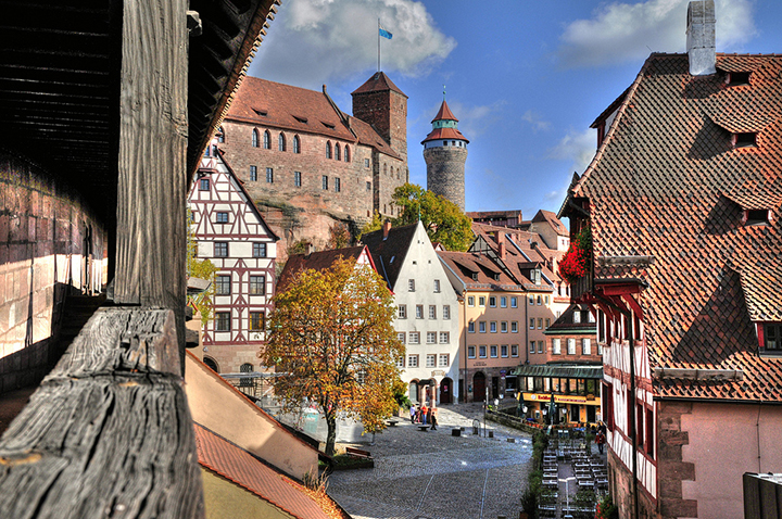 Dalej, renesansowy Stary Ratusz z XIV-XVIII w., z godnymi uwagi posągami nad drzwiami. W głębi na wzgórzu ogromny zamek (Kaiserburg) z XIV-XV w., a u jego podnóża Dom Albrechta Dürera, gdzie muzeum jego prac (kopie) i pamiątek. Przy wyjściu sklepik z pamiątkami związanymi z artystą. Nabyłem tam koszulkę z wizerunkiem słynnego nosorożca. Nad rzeką Pegnitz, gotycki Szpital św. Ducha (Heilig-Geist-Spital) z XIV-XVI w., o spadzistym dachu i dwóch łukach nad powierzchnią wody. Odjazd w kierunku Pilzna i dalej, przez północne Czechy do Wrocławia. To była duża dawka historii i sztuki niemieckiej, a wszystko zawdzięczam gościnności Helmuta Berschina.