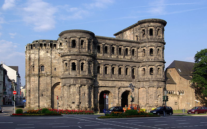 Za czasów rzymskich miasto zwano Augusta Treverorum. Zachował się z tego okresu most rzymski na Mozeli, II wiek, wspaniała Porta Nigra (Czarna Brama) też z II w. oraz Termy Cesarskie i Bazylika Konstantyna, obie budowle z IV w. Wczesnogotycka bazylika Świętego Macieja, XII w., przy opactwie benedyktyńskim, z grobem apostoła Macieja z tego samego okresu. Na Starym Mieście piękna wczesnogotycka kamieniczka „Pod Trzema Królami”, XIII w. Obok bazyliki Konstantyna okazały Pałac Elektorów trewirskich, XVII w. Przed nim park i rzeźby Ferdynanda Tietza (1742-1810). Jednym słowem, ogromne bogactwo zabytków z różnych epok.