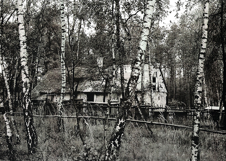 Podczas wyprawy na grzyby, powieściowy ojciec, Rafał Koguczak, odkrył w lesie glinianą chatę, którą się zachwycił i nabył ją wraz z dziesięcioma arami ziemi. Musiał wcześniej ukończyć specjalny kurs rolniczy, zgodnie z ówczesnymi przepisami, aby stać się właścicielem chaty i kawałka ziemi. Najtrudniej chyba było przekonać Koguczakowi do tej inwestycji własną żonę, ale ona, mimo twardego charakteru, ulegała jego fantazjom, zwłaszcza że nowy właściciel gospodarstwa zamierzał osiągać z niego dochody, np. hodując jedwabniki. Ta letnia siedziba z „daczy” przeistoczyła się w „skansen”. Rafał Koguczak zbierał bowiem w okolicy przeróżne zabytkowe przedmioty: podarowane lub znalezione narzędzia rolnicze, wykopane na swoim podwórku zamierzchłe naczynia gliniane itp. Wkrótce urzędowo, oficjalnie przybrało, zgodnie z duchem czasu, nazwę „Izby Regionalnej” inne domostwo we wsi, z którego pan Rafał utworzył muzeum. Część przedmiotów przywiózł do niego po prostu z miejskiego bloku w tajemnicy przed żoną i przedstawił jako zabytkowe eksponaty. Na uroczyste otwarcie zaprosił lokalne władze i mnóstwo znajomych. Impreza udała się znakomicie, przybyło na nią wielu dostojników i znajomych artystów z miasta, a także miejscowi oficjele.