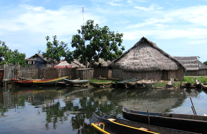 W piątek, 6 lutego, z lotniska Paitilla małą awionetką odlatuję rano na wyspę Ustupu w archipelagu Św. Błażeja (San Blas). Wydaje mi się, że mam ważną misję do spełnienia. Wiozę mianowicie cały plecak prezentów od żonatego z wrocławianką Indianina Kuny dla jego rodziny na wyspie. Awionetka po godzinie ląduje na trawie nad brzegiem Morza Karaibskiego, a na wyspę trzeba dostać się chyboczącym czółnem „dłubanką”, uiściwszy przedtem „podatek turystyczny” u wartownika. Okrągłe chaty z pionowych prętów bambusowych stoją jedna przy drugiej. Właściciel czółna prowadzi mnie do rodzinnej chaty Indianina z Wrocławia, Amancia Chiari. Poznaję jego rodziców, siostrę, brata i bratanka, jedynego spośród nich znającego język hiszpański. Wycieczka do stojącej nad samym morzem drewnianej toalety jest pretekstem dla tabunu indiańskich dzieci, aby mnie tam z radością i wrzawą odprowadzić. Ja nie podzielam tego entuzjazmu, niestety.