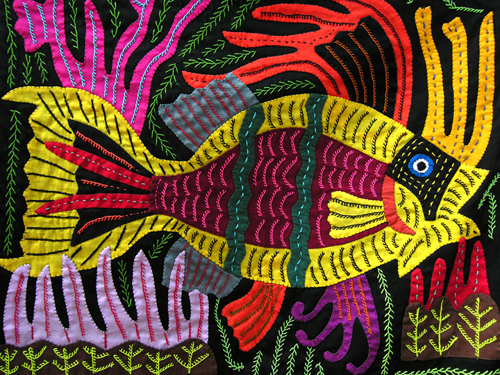 Niedziela, 15 lutego. Obiad w restauracji „La Toja”. Powrót do Mi Pueblito, gdzie kupuję piękne indiańskie sandały z cienkiej skóry (w Panamie zwą się cutarras) i trzy mole, czyli typowe dla sztuki Indian Kuna kolorowe aplikacje na tkaninie. Przedstawiają zielone papugi i kolorowe tukany. Oprócz tego, piękne, kolorowe etui na okulary, przedstawiające papugę. To też jest mola.