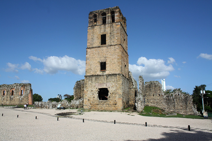 Środa, 4 lutego. W towarzystwie syna Doñii Neli na lotnisko Paitilla, gdzie bilet na wyspę Ustupu, w Archipelagu San Blas (kraina Indian Kuna). Potem ruiny Starej Panamy, zdobytej i spalonej w 1671 roku przez angielskiego pirata Henry Morgana (1635 – 1688). Najlepiej zachowała się wysoka czworokątna wieża starej katedry, zbiornik na wodę i mury klasztoru Matki Boskiej Niepokalanego Poczęcia, a także stary kamienny most w kształcie łuku. Panama była w okresie hiszpańskiego podboju bardzo ważną bazą dalszego zdobywania hiszpańskich kolonii. To stąd wyruszały wyprawy do Kolumbii, Ekwadoru, Peru i Chile. Tu ładowano na statki hiszpańskie towary przewożone drogą lądową z wybrzeża Morza Karaibskiego i tu wyładowywano peruwiańskie skarby, by załadować je ponownie na statki oczekujące w Portobello na wybrzeżu karaibskim. Kolejny rozwój miasta przypadł na okres budowy Kanału Panamskiego, najpierw w latach 1880-1889 (Lesseps), a potem w latach 1904-1914, gdy Amerykanie definitywnie zrealizowali ten projekt. Dzisiaj Panama jest dużym nowoczesnym miastem (ponad 800 tysięcy mieszkańców), pełnym wysokich wieżowców.