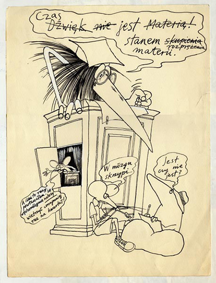 Publikował także, w „Szpilkach” i innych tygodnikach i miesięcznikach, zabawne, a zarazem refleksyjne i z dużym wdziękiem czynione rysunki satyryczne, co podawało nam w czasach komuny dodatkową porcję tlenu do przetrwania. Jego ogląd świata nie był oparty na buncie dla buntu, czy na negowaniu starych zgredów, bo rzecz była nie w wieku, ale otwartości rozumu i czucia, a przede wszystkim artystycznego intelektu.