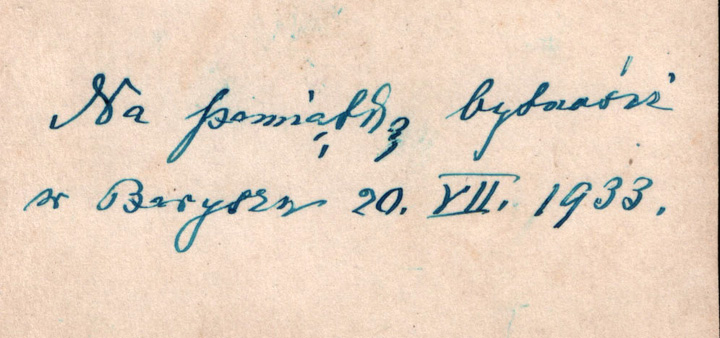 Na pocztówce tylko kilka słów: Serdeczne pozdrowienia i ucałowania wszystkim. Wczoraj byliśmy na pogrzebie wuja kapitana, a potem u Kukackich. Ciocia Binia także. Dziś jedzie z wujem H. do Radziechowa na jeden dzień. Lwów, 17.II.1908. Wszystko ładnym, równym pismem.