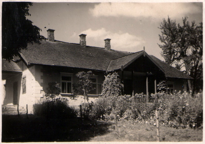 Tamten dom, w którym urodziła się matka, na wysokiej skarpie, w olbrzymim sadzie. O ścianach ze starych, wielkich pni. Z małym balkonem biegnącym wzdłuż frontowej ściany, na wysokości krawędzi drzwi wejściowych. Okno pokoju matki było po prawej stronie domu, a po lewej patrząc na fotografię.