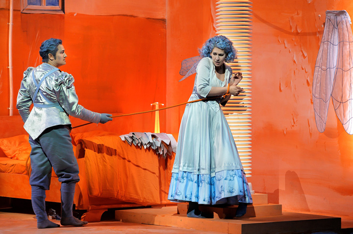 Na tym polega iluzja, bo to nie my fruwamy, tylko dwóch przebranych za nas chłopców-statystów. Wchodzimy z Tomaszem za kulisy, a tam czeka już dwóch młodych statystów, którzy są wciągani na linach do góry, a później z powrotem. I to jest moim zdaniem naprawdę dobry pomysł, daje wspaniały efekt sceniczny. Nawet proponowaliśmy, żeby ci chłopcy wychodzili razem z nami do ukłonów już po I akcie, ale niestety, musieli poczekać do końca całego spektaklu.